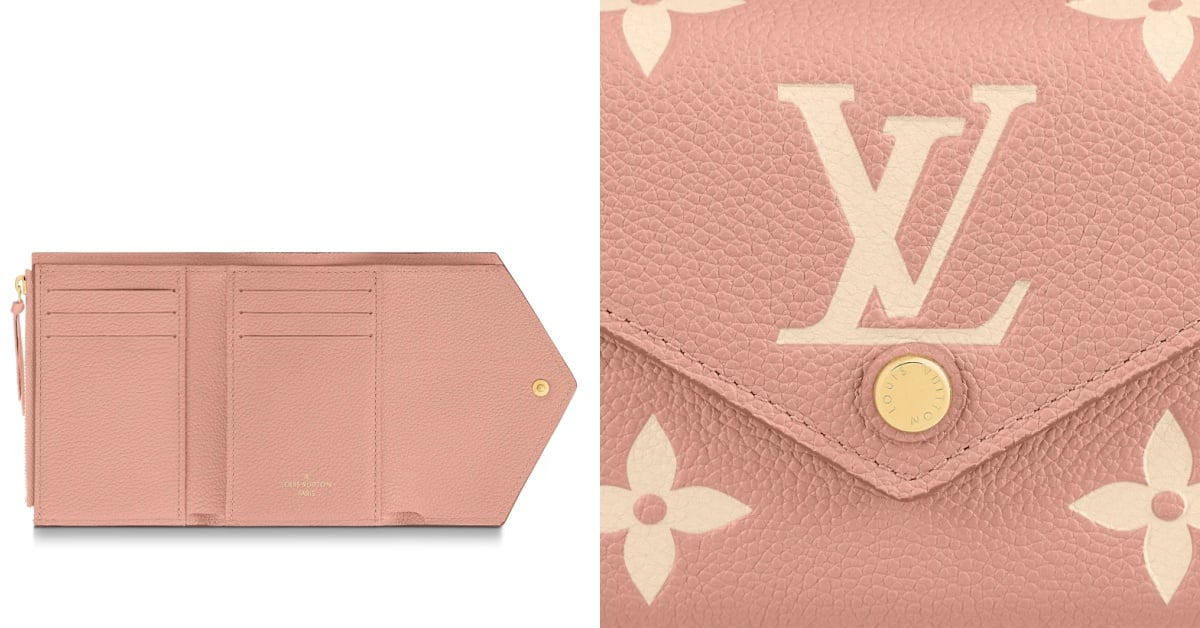 LV經典的老花在粉色包上看起來太美了吧!這款Victorine錢包採用柔軟的粒面Monogram Empreinte皮革製作,皮夾包身上雙色皮革綴有LV經典的Monogram壓花圖案,尺寸小巧搭配了6個信用卡收納夾層與拉鍊零錢袋,非常方便!