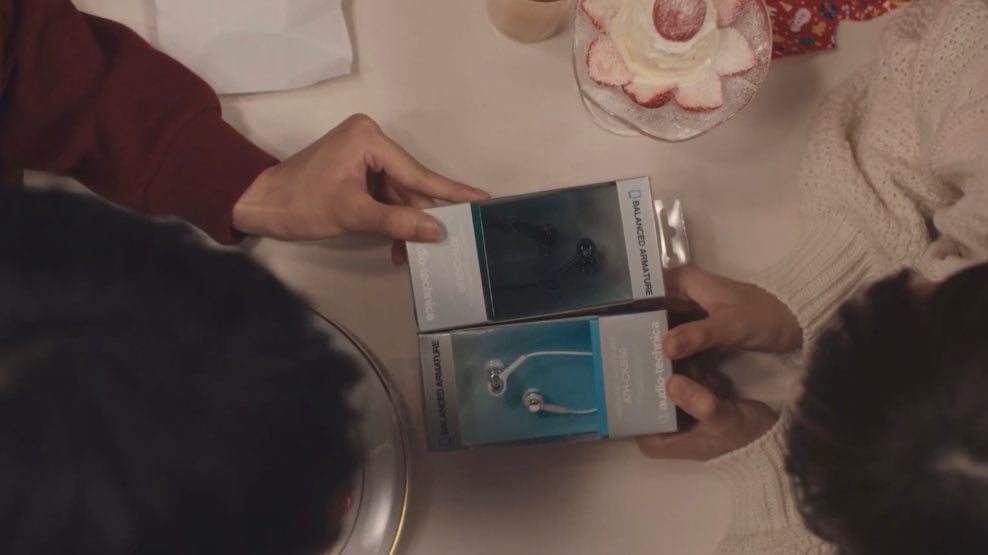 在紬和想共度的聖誕節裡,說好要「交換禮物」的兩人,竟然買了同款不同顏色的有線耳機!真的太有默契了(笑),而這副耳機也在3年前壞了,這也呼應在3年前完全喪失了聽力的想,就像那副發不出聲音的耳機。
