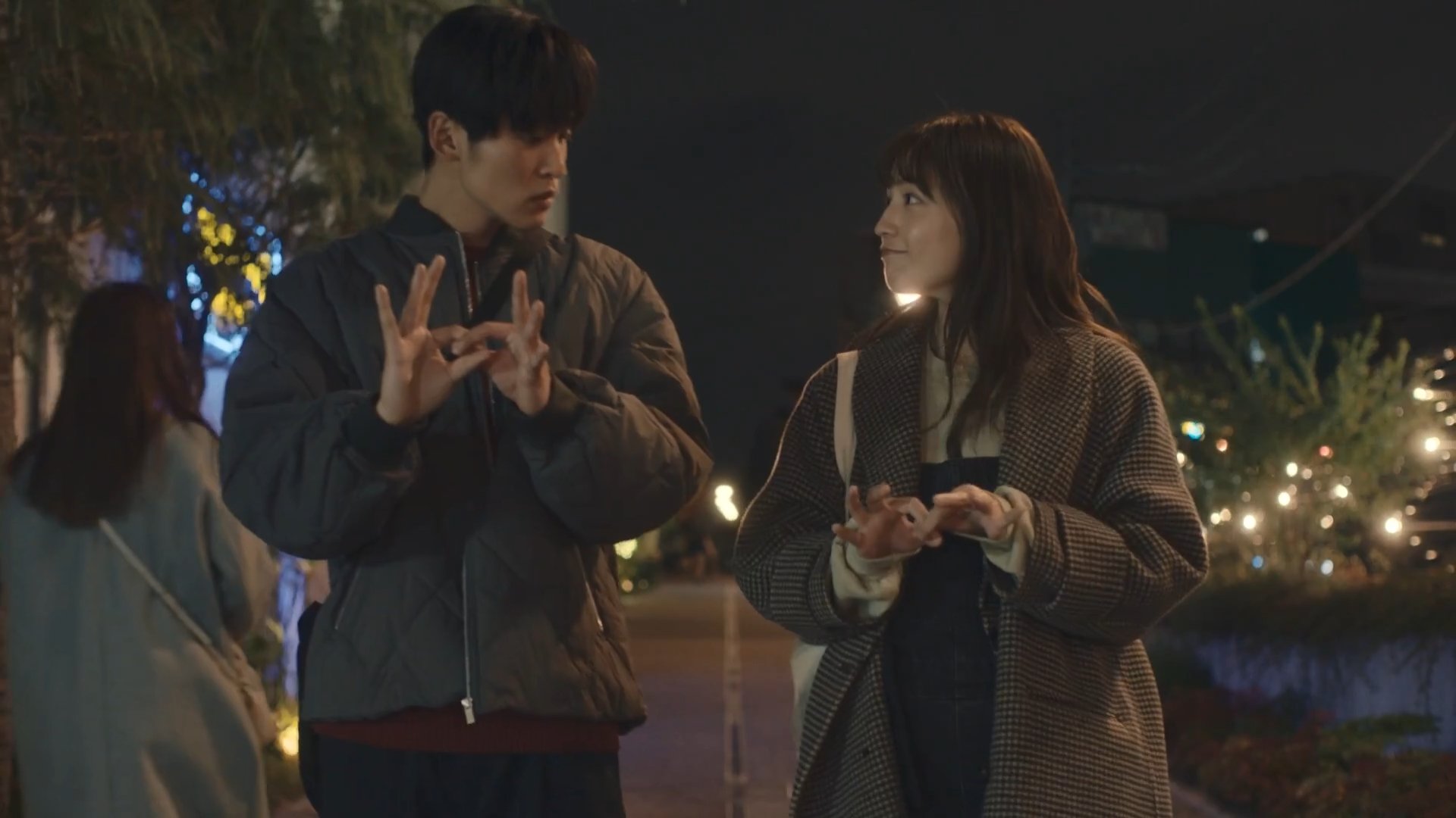 紬和想邊聊天邊走在路上時,紬比出了「一直」的手語,而這個手語也和開播前的視覺圖中,川口春奈所比出的手勢相同,可說製作組從頭就埋藏了一個大伏筆啊!