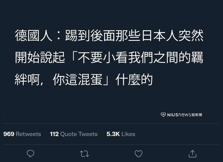 在小組賽裡被譽為死亡小組的「E 組」,包含日本(FIFA 世界排名 24)、德國(世界排名 12)、西班牙(世界排名 7)以及哥斯大黎加(世界排名 34)。11/23 日本迎戰德國,本來球迷們都以為德國會有較大的勝率贏得比賽,沒想到最後德國竟大爆冷以 1:2 輸給日本,讓粉絲紛紛笑稱:「日本的熱血足球漫可不是畫假的!」