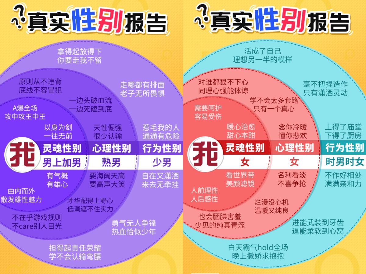 直接探索你內心究竟是住了個男人魂還是女人魂!