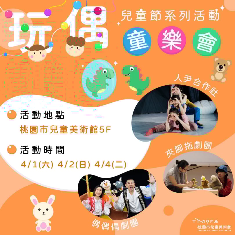 桃園市兒童美術館在兒童節連假邀請三個劇團,偶偶偶劇團演出《野狼、兔子、AMIGO》手偶戲、夾腳拖劇團帶來《我從天上來》兒童劇,人尹合作社的《馬麻,我什麼時候可以長大?》親子劇,都不需報名自由入場~看完劇後還可以參加新展「如果我是一面鏡子」的專人覽導,以及親子工作坊(需要報名,名額偏少)哦!