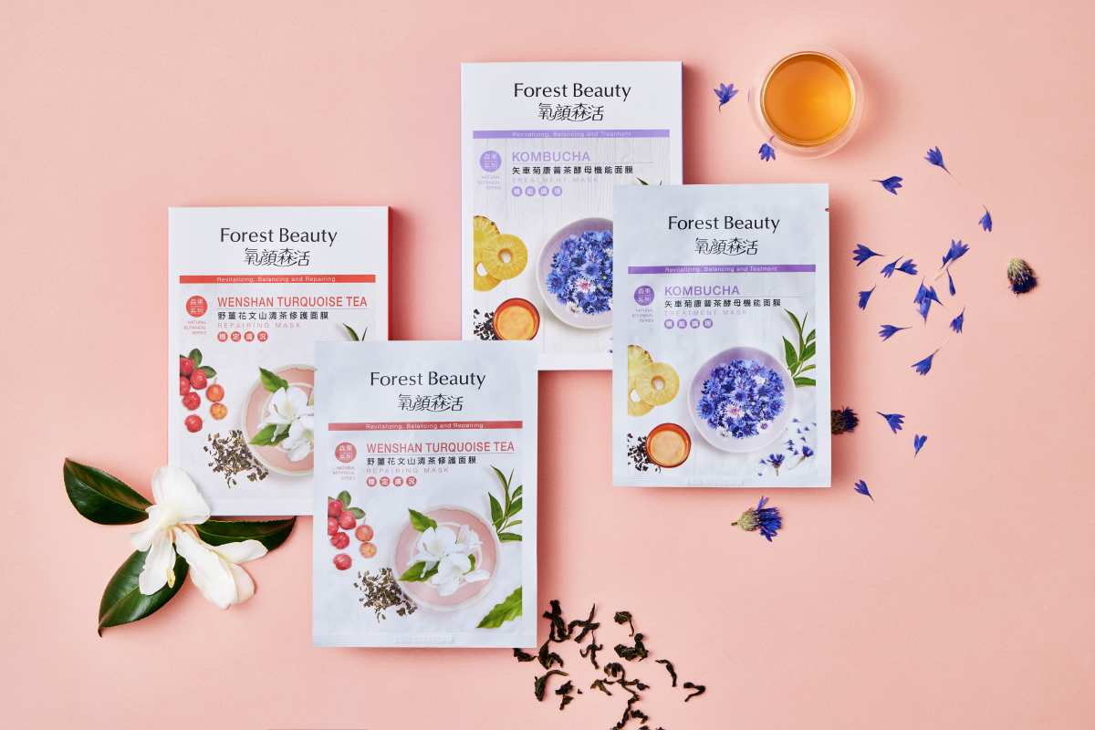 專注於「取自天然、無害添加、高安全有效性」三大研發核心的美容保養品牌「氧顏森活Forest Beauty」,憑藉專業研發與產品實力,連續 5 年榮獲國際美容大賞肯定,堅持做世界級的保養品。氧顏森活鑽研以「茶」養顏多年,今夏除了 2 款面膜新品「矢車菊康普茶酵母機能面膜」和「野薑花文山清茶修護面膜」,更進一步打造全新保養品系列:「高效彈嫩兒茶素精華露」、「矢車菊康普茶機能調理水凝霜」、「玫瑰美人茶多酚保濕水凝霜」、「珍珠花玉露青春肌活水凝霜」,將優質台灣茶的文化結合日和士林尖端生技研究室科技,茶葉萃取富含茶多酚及兒茶素等高效護膚精粹,輕鬆打造細嫩膚感,開啟茶時代的保養之術!