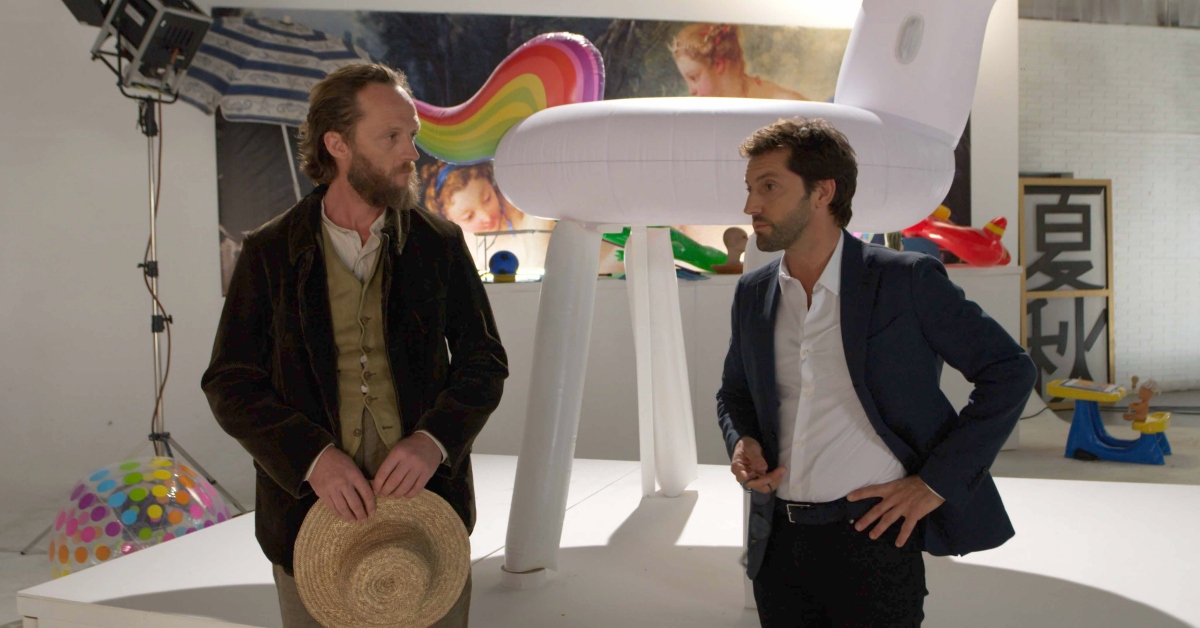 此外,《梵谷到我家》也探討了當代藝術和藝術市場的現況。當懷才不遇的作家李奧質問藝術經紀人為何不幫他找合適的藝廊時,卻慘遭打臉:「你的畫風沒有市場!」讓他憤而反擊:「當然,因為我不譁眾取寵!現在最賣的是村上隆、達米恩赫斯特、傑夫昆斯,這些商業化作品!」除了強烈表達對藝術商品化的不滿,也帶出不得志藝術家的生存困境,與前人梵谷的悲苦人生相互呼應。片末,劇組也特別安排李奧與梵谷一同來到梵谷的長眠之地,一起並肩站在受到後世高度景仰、保存良好,甚至被列為觀光客必遊之地的梵谷之墓前,重新省思彼此的人生,為兩人跨越時空的情誼,留下美好的紀錄。《梵谷到我家》將於5月7日正式在台上映。
