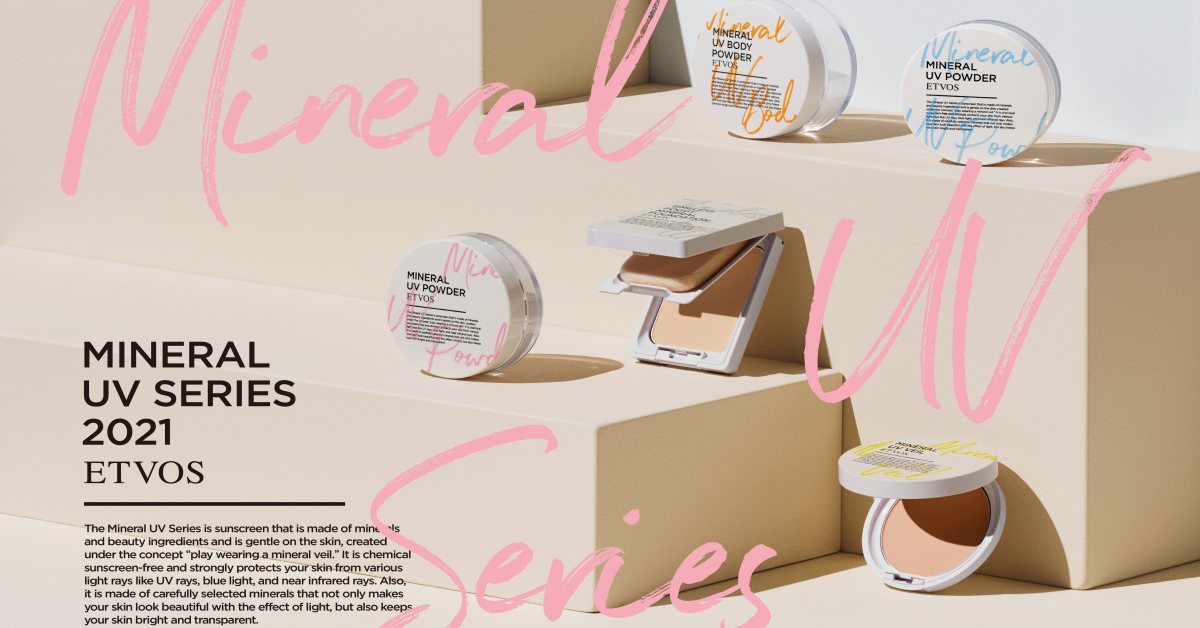 ETVOS舞伶礦物防曬系列2021年全新包裝包含五項產品:舞伶防曬礦物粉、舞伶礦物防曬蜜粉餅、UV礦物美白精華、礦物UV保濕精華與恆久霧感限量雙層隨身粉盒–繽紛限定版。有別於市售防曬品易有黏膩厚重、顯白不自然等問題,舞伶礦物防曬系列皆具高效防曬與保養功能,幫助呈現清透舒適的自然妝效,讓使用者盡情享受夏日時光。