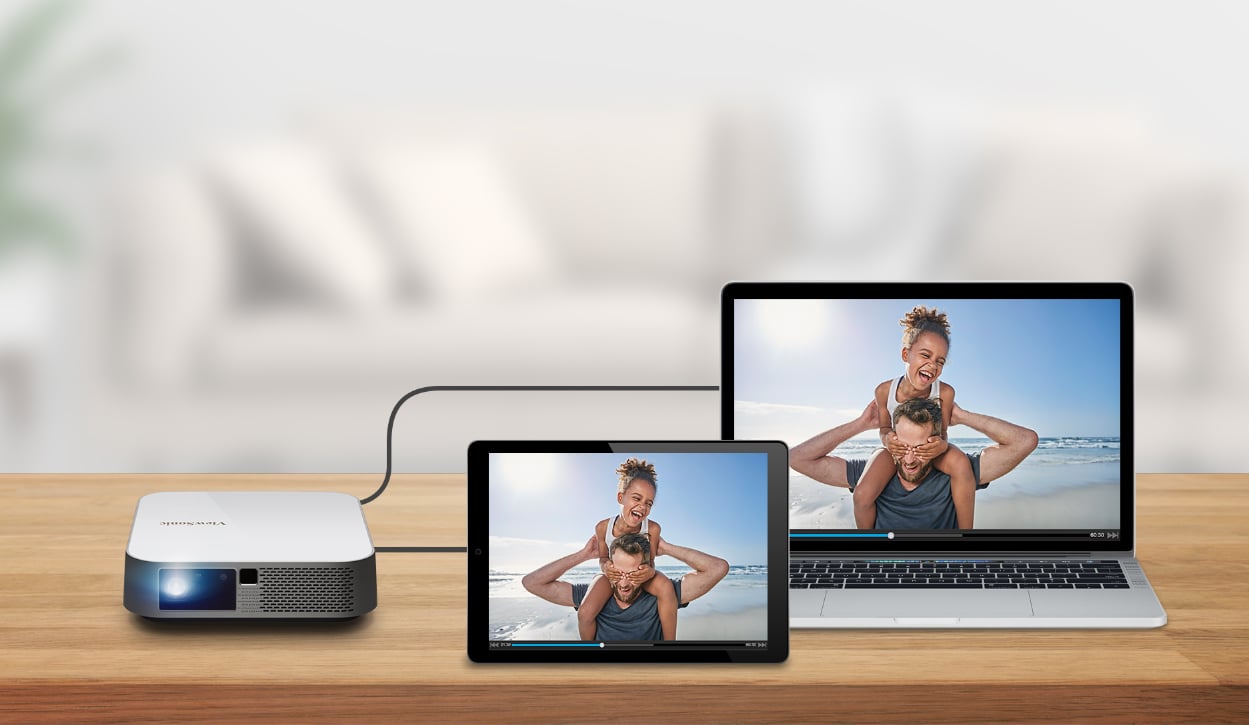 ViewSonic推出的「M2e」可說是眾多網友推薦的品牌呀,它內建瞬時自動對焦及自動垂直梯形修正、獨家Cinema SuperColor+™搭載Full HD解析度、支援Wi-Fi、藍牙、USB、Type-C等多元連接,還有個幾乎無藍光的護眼功能,關燈也不怕傷眼睛。雖然沒有內建APP但只要透過鏡像投影,一樣輕鬆觀賞~