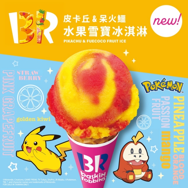 皮卡丘&呆火鱷 水果雪寶 單球甜筒或紙杯:95元(3月1日至期間限定、售完為止)