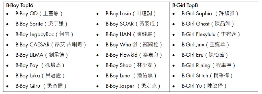 2025 Red Bull BC One Cypher Taiwan 晉級決賽完整名單(依出場序排列)