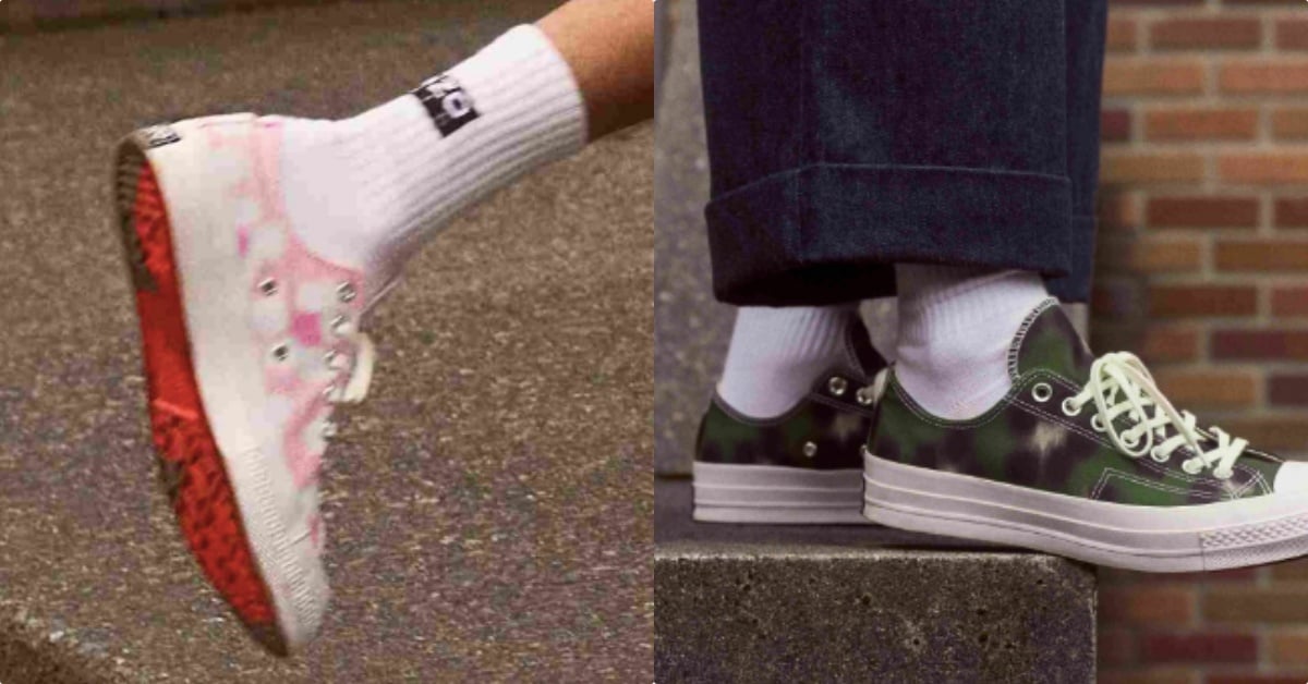 Converse x KENZO 聯名系列櫻花粉花影迷彩低筒帆布鞋 NT.4,800/Converse x KENZO 聯名系列軍綠色花影迷彩低筒帆布鞋 NT.4,800/奶油白花影迷彩高筒帆布鞋 NT.5,300