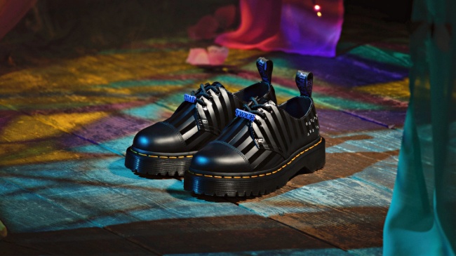 「這個世界並不是非黑即白,還是存在著灰色地帶。」講著金句的星期三最新居然破天荒與Dr. Martens(馬汀大夫)聯手,把經典馬汀鞋打造成自己最愛的「暗黑哥德學院風」,身為色彩過敏症患者(?),全系列商品統一以紫黑色調為主,再注入星期三的歌德蘿莉叛逆風格,不是萬聖節扮裝也帥得怪美的。