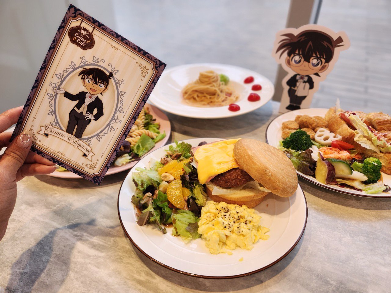 MyAnime Café的餐食全都是「蛋奶素新蔬食料理」,吃素的妞妞也不用煩惱,一樣可以來到《名偵探柯南》主題咖啡廳與自己最愛的角色一同用餐!想要拿到餐點特典但不想在外面內用的粉絲,也可以選擇外帶喔(外帶僅限甜點、飲料)。