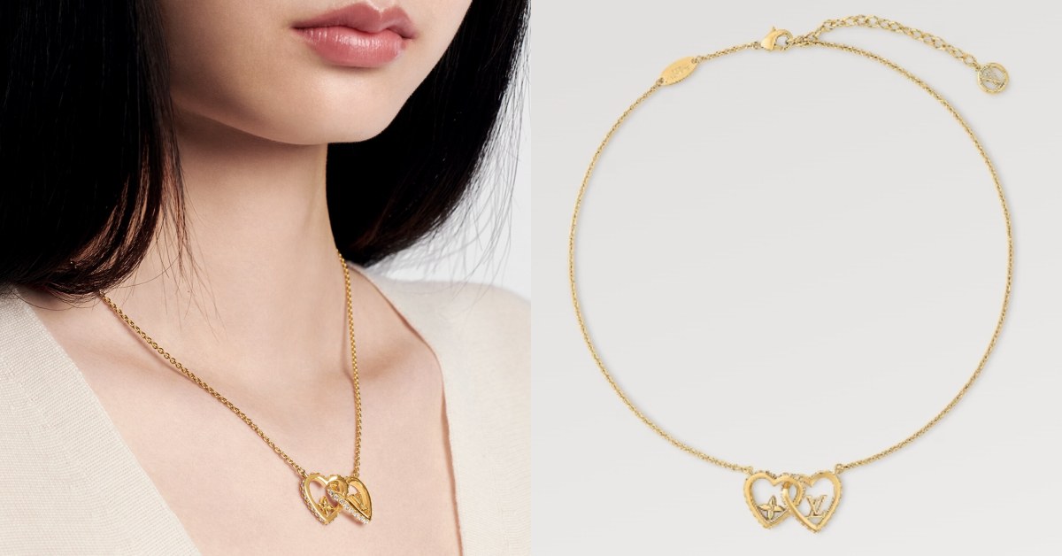 「My LV Love 項鏈」珍貴的雙吊墜以亮麗的飾面金屬打造,雙心交疊搭配奢華的水鑽點綴邊緣,能夠同時滿足少女心和大人的成熟感,是一款造型度較高的單品,妞編輯推薦可以和V領類型的針織衫搭配,營造小女人的可愛氛圍!