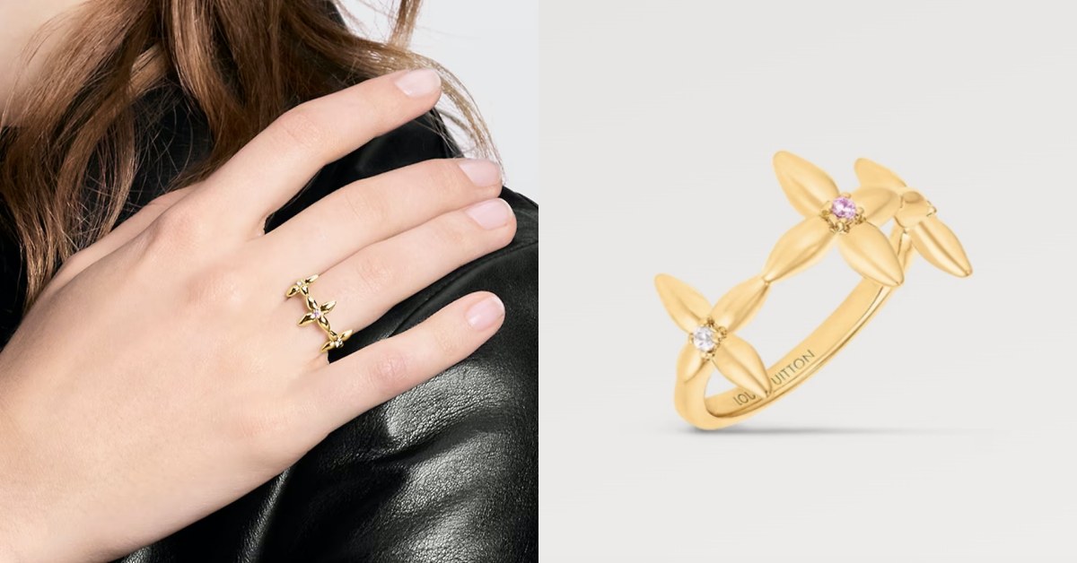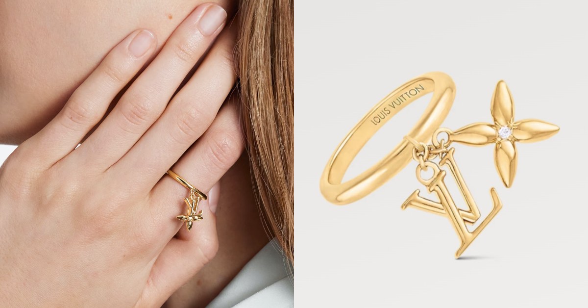 有誰和妞編輯一樣是戒指控?(笑)這款高貴典雅的「Louisette Signature戒指」配戴省時又不需額外構思搭配,戒指以金色飾面金屬精心打造,並綴有三朵尖角Monogram花卉圖案,每朵的中央均以閃亮水晶完美點綴,單一配戴就很有重點!