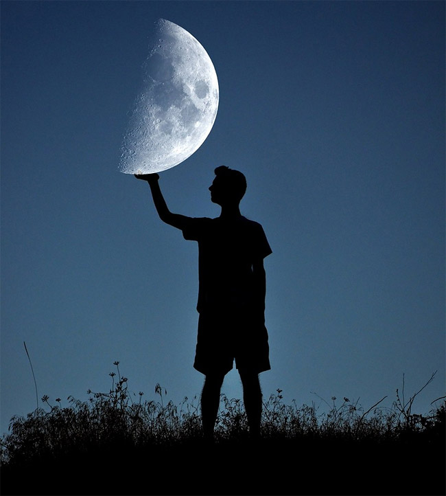 阿爾巴尼亞的攝影師Adrian Limani,將弟弟和月亮的有趣互動作為拍攝題材,並將人的動作以剪影的方式呈現,藉以襯托月光的美,因此有了這一系列超現實、有趣的作品!