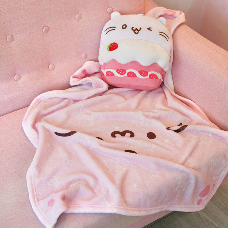 冬天最療癒的組合就是「草莓、毛毯、抱枕」吧?裹著毛毯、緊緊抱著麻吉貓懶在沙發上,真的超幸福~而且商品還顧及到收納問題:毛毯折起來後,就可以收進抱枕的隱形拉鍊裡,增加抱枕的厚實度喔~