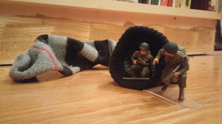A士兵:「不行......這襪子太臭了......我寧願英勇地戰死,也不願意龜縮在這臭襪子裡面,苟且偷生!」
