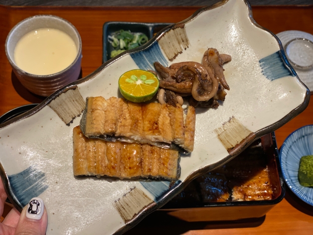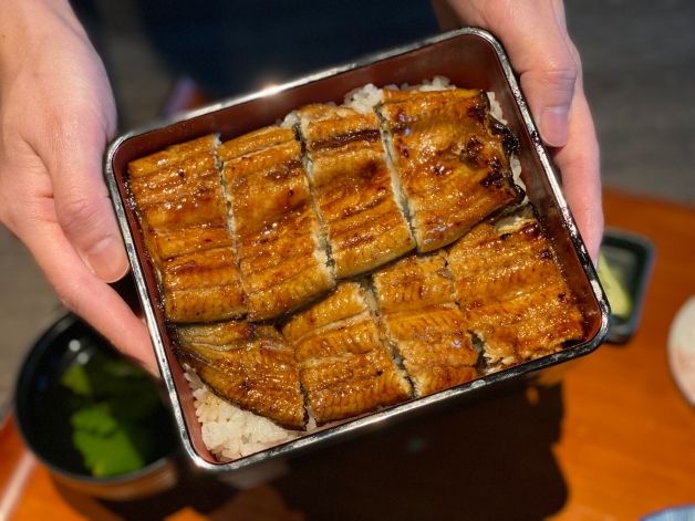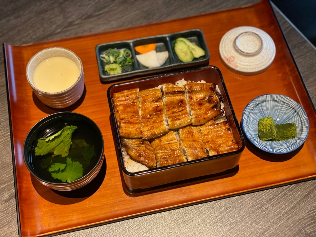 最頂級的「特上鰻魚蓋飯」附茶碗蒸、湯品、蕨餅、小菜、烤鰻魚乾、鰻魚拌黃瓜和高湯玉子燒等,另外還有基本款「鰻魚蓋飯」,共分成「松」、「竹」和「梅」三種價位,三角的鰻魚都會先將其從後背切開後烤過再蒸,蒸完再烤的關東風調理方式,使其肉質柔軟,之後來回沾裹醬料三次並用炭火慢慢烤成,每份都是日本職人的堅持!