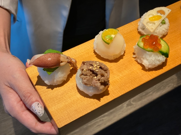 全台獨家的「特上一口壽司」,共有「880元」和「680元」兩種價位,皆附茶碗蒸、湯品、蕨餅和小菜,基底的米為日本富山越光米,搭配各種嚴選的食材,可愛小巧的一口尺寸,方便入口,特別是外觀的食材色調更是繽紛,絕對要相機先食啊!
