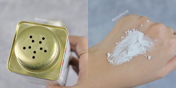 灑出來的粉末很細緻,輕撲一層在身上會有自然的涼感,像妞編去泰國都會買一小罐隨身攜帶,抹在容易流汗摩擦的部位,涼爽的程度超有感,而且現在台灣也買得到了!(寶雅獨賣)