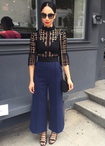這套西裝加蕾絲內衣的風格,是莫妮卡最常幫客戶配的「標準公式」。黑色的西外套裝,就以不同材質的服裝混搭。