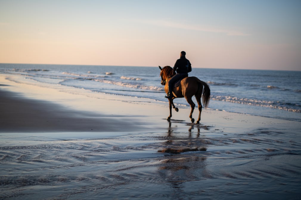 在醫院度過了辛苦的一天,主人和Peyo會在海灘上享受兩人時光!