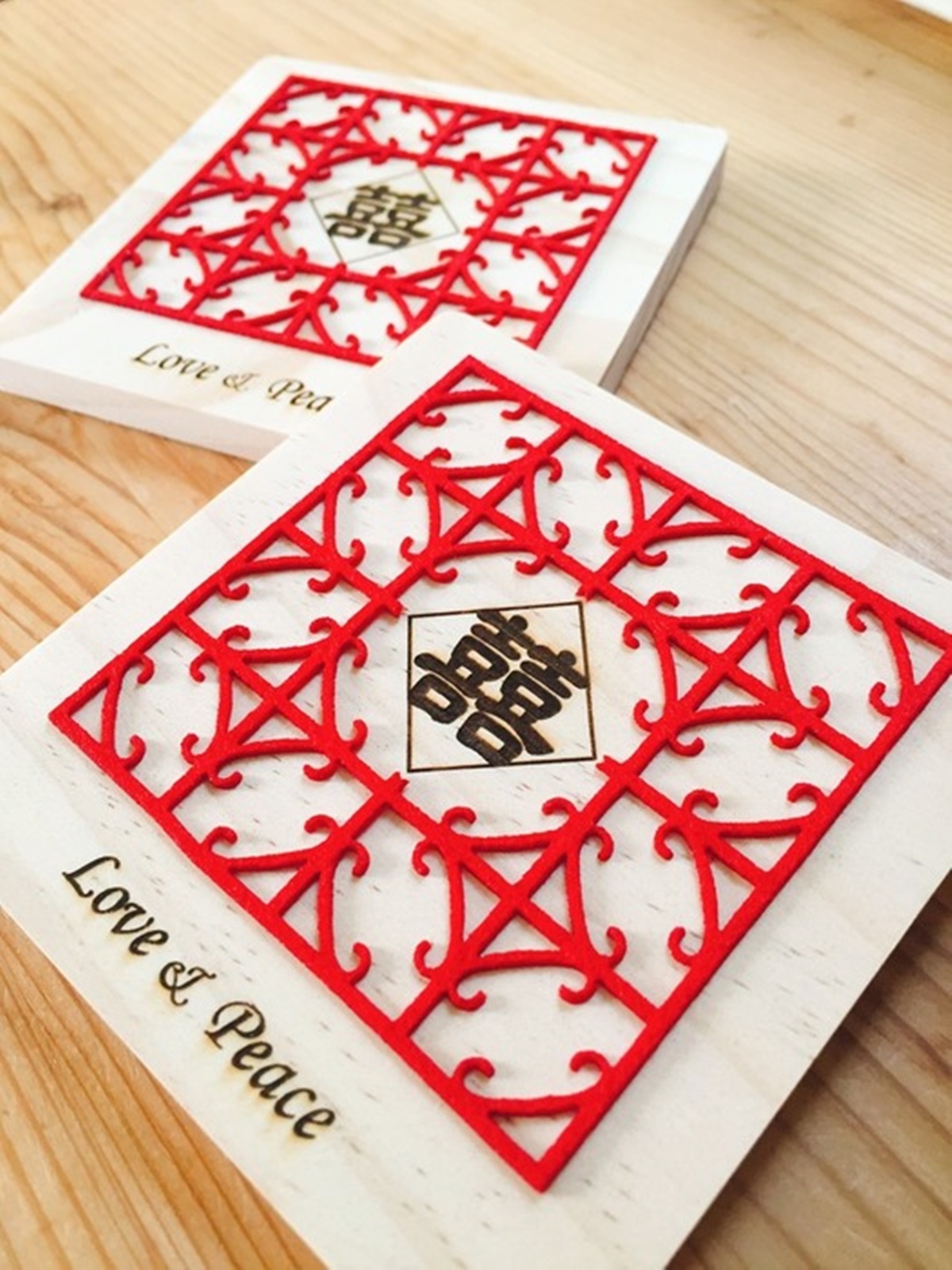 送什麼好:小禮物當然也要復古一下,像這樣印上鐵窗花圖案的杯墊既符合主題,客人帶回家後還可以重複利用!