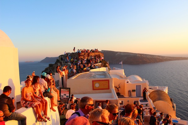 不過,因為全世界的人來希臘,都會朝聖聖托里尼的夕陽,所以黃昏時期就是這麼多人啊(無誤)!不想要夕陽照前面有一堆人頭,妞編輯建議絕對要早點去卡位。