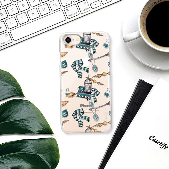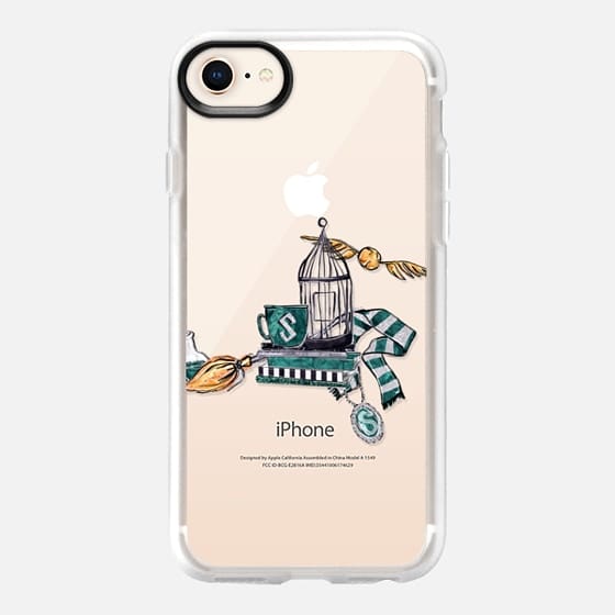 史萊哲林款的手機殼上除了有代表色之外,還有金探子與掃把,讓人看了就想到魔法世界中最刺激的運動——「魁地奇」!以上適用的手機型號為iPhone 4至iPhone X。