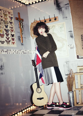 像這種帶有清新感的百褶及膝裙不論是毛料、皮革材質都十分推薦,簡單的搭配針織衫或襯衫最後再投入運動鞋就完成韓系女孩感穿著。