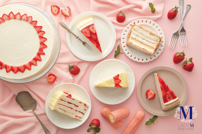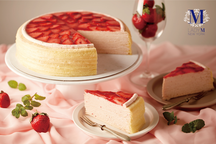 首推當然就是台灣Lady M全球獨家款「草莓香緹千層蛋糕」,以粉紅色草莓鮮奶油為基底,層層細緻薄透的蛋皮、上層綴滿新鮮草莓,濃濃草莓香讓人淪陷~