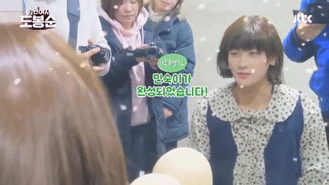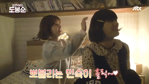 完成造型的炯植,非常滿意自己的新裝扮,甚至幫自己取的新名字叫敏淑~寶英看到敏淑很開心大喊:「你好,我的妹妹」炯植也配合的一直甜喊寶英歐逆~兩人看起來真的超像親姊妹的!只是這對姐妹花身高差有點多?(笑倒)