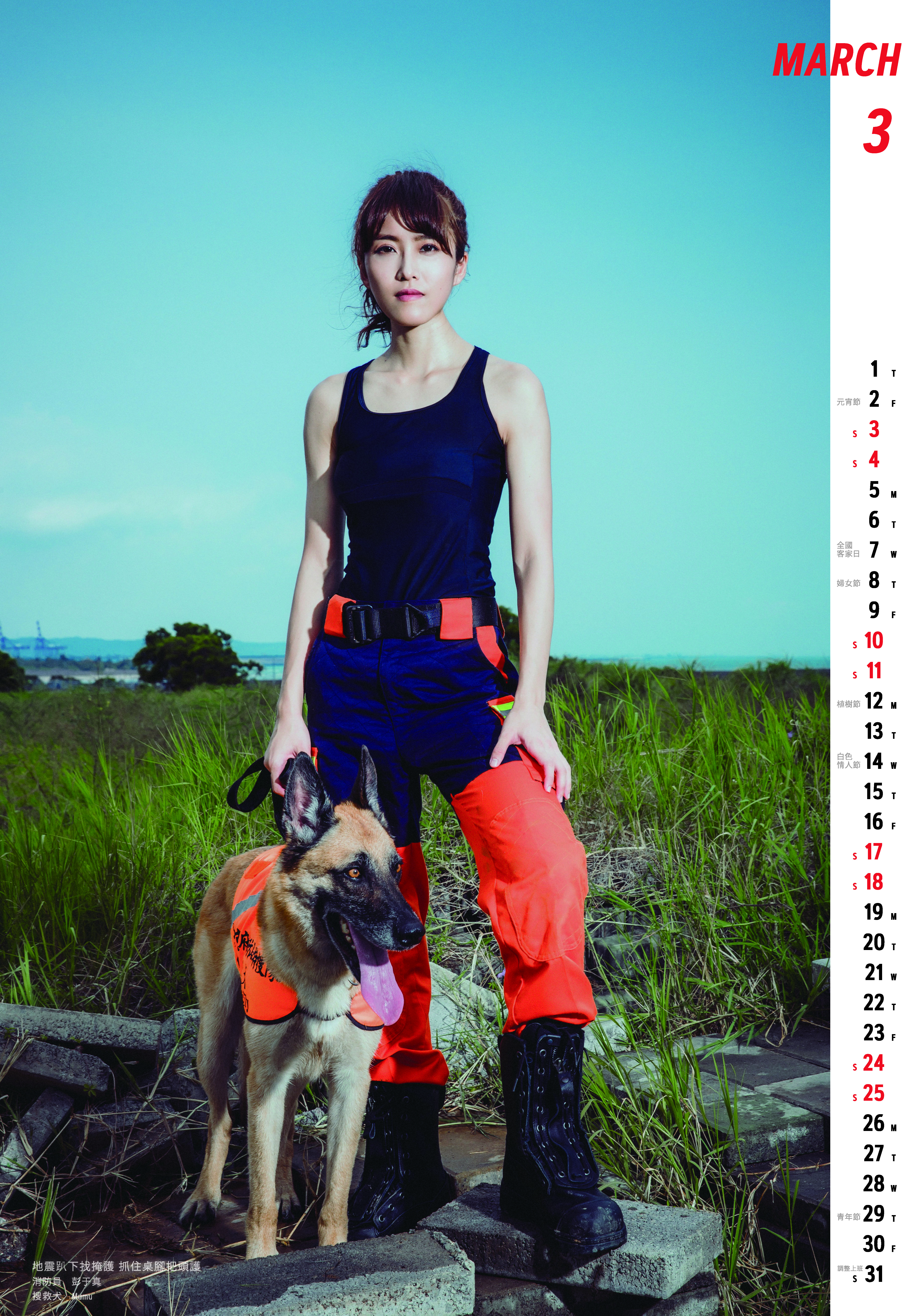 這次不只有猛男消防員擔任封面人物,更有高顏值的美女控犬員,這張封面有沒有巾幗不讓鬚眉的Fu呢~每隻搜救犬都有搭配的控犬員,因此在搜救現場,總是會看到一人一狗一起行動,這些控犬員除了是搜救犬的領導者外,也要隨時注意搜救犬的身體狀況,這些狗狗可是被賦予找到生還者的重大責任喔~