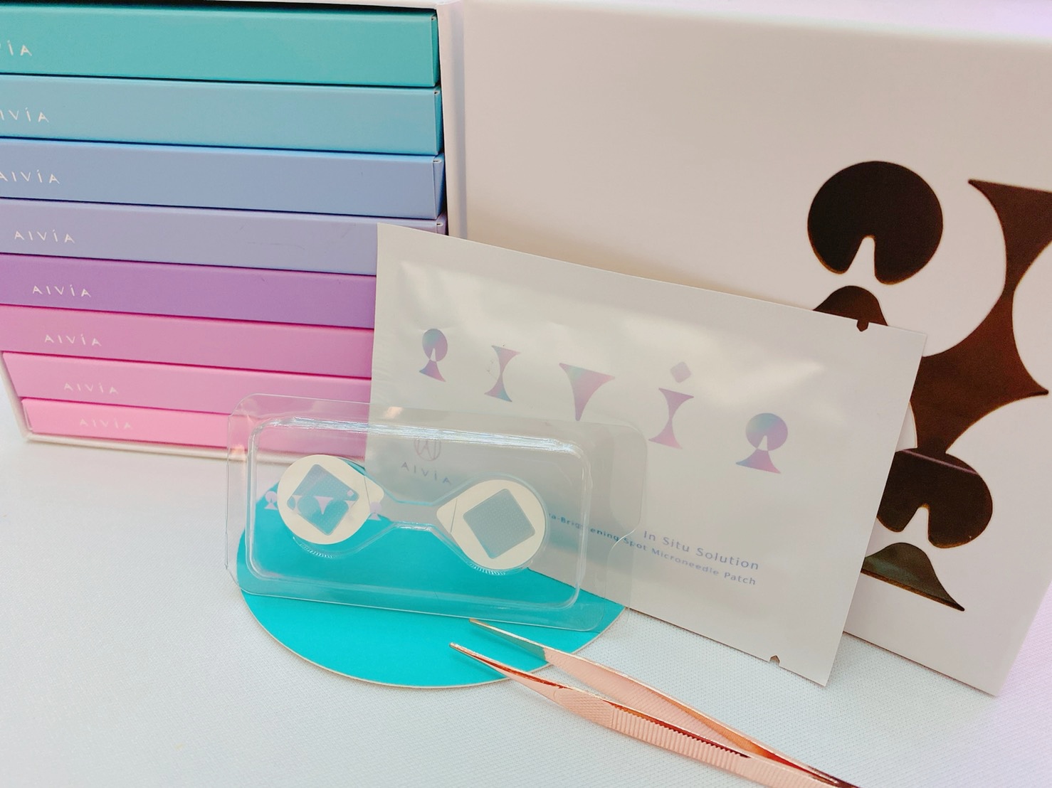 台灣醫藥生技大廠寶齡富錦的全新品牌AIVÍA 艾微漾,邀請皮膚科邱品齊醫師加入研究,推出「皙針淡斑貼片」,在1cm X 1cm的貼片大小密布著196針,突破性的 15針尖端乘載著三大有效成分:「穀胱甘肽」、「維他命B3」及「傳明酸」 。