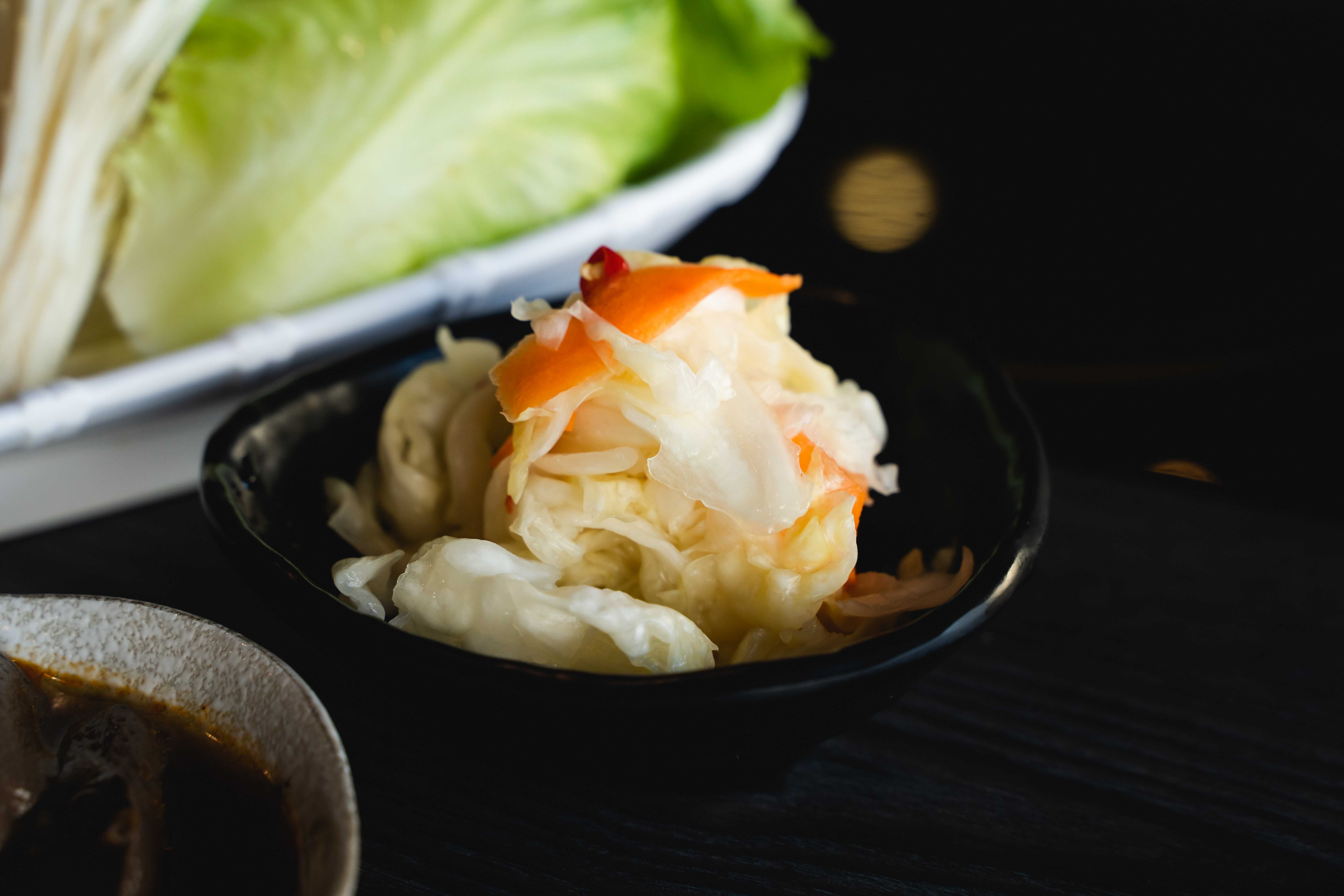 除了主角火鍋之外,七品鍋物的配角「麻辣鴨血」及「台式泡菜」也是店長相當得意的功夫菜,像是熬煮麻辣鴨血的火侯控制必須相當講究,而泡菜也是集30餘年的經驗,使用糖、醋、鹽及不外傳的黃金比例醃製,店長笑說:「看似最不起眼,可卻是內行人才知的『超級隱藏版』」。