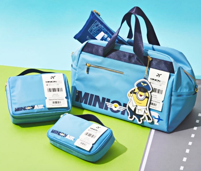 各位旅客,請繫好安全帶,歡迎乘坐「MINION AIR」(笑)!這系列還原電影中的飛機設定,以水藍色包身、搭配專屬航空LOGO,打造出1款聯名波士頓包以及2款不同Size的收納小包,同時還以「航空行李標籤」裝飾,真可以拆下來當作行李掛牌裝飾使用喔~