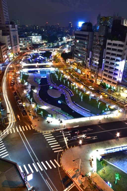 超美的光之隧道、在水中發亮的柳樹裝置,閃爍著點點光芒,就這樣沿著柳川慢慢走,心情也隨之浪漫了起來。