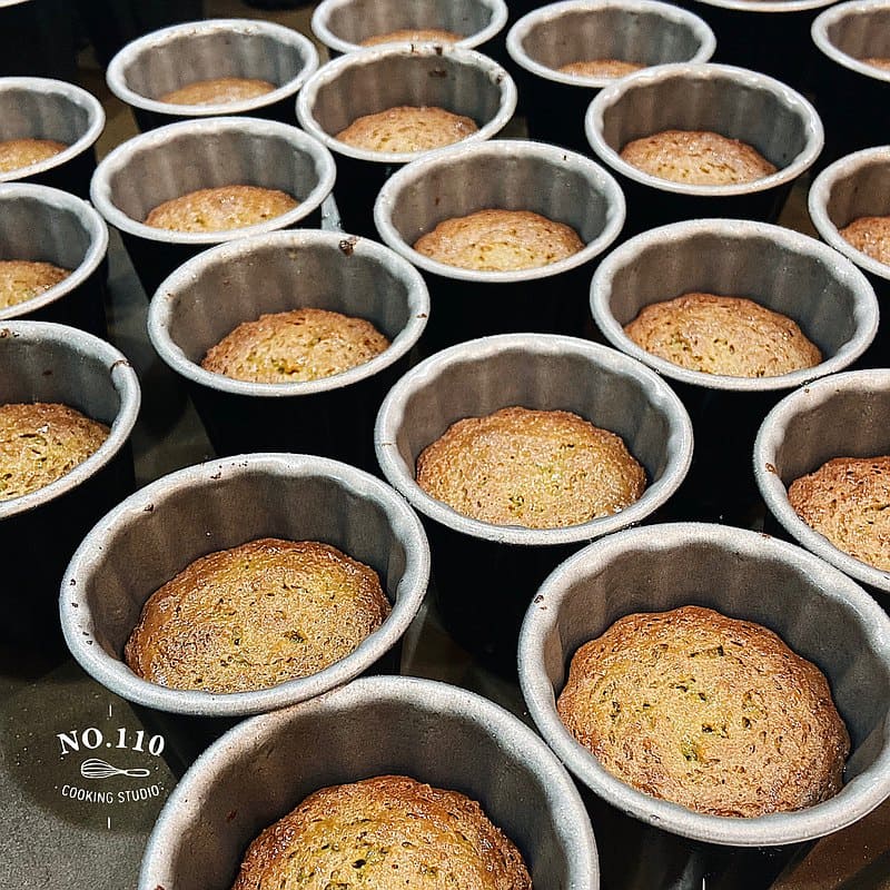 視模具大小調整烘焙時間,以 191 °C 烘焙 34 ~ 59 分鐘。烘烤到麵糊完全定型,頂部應該呈現焦糖化的顏色。