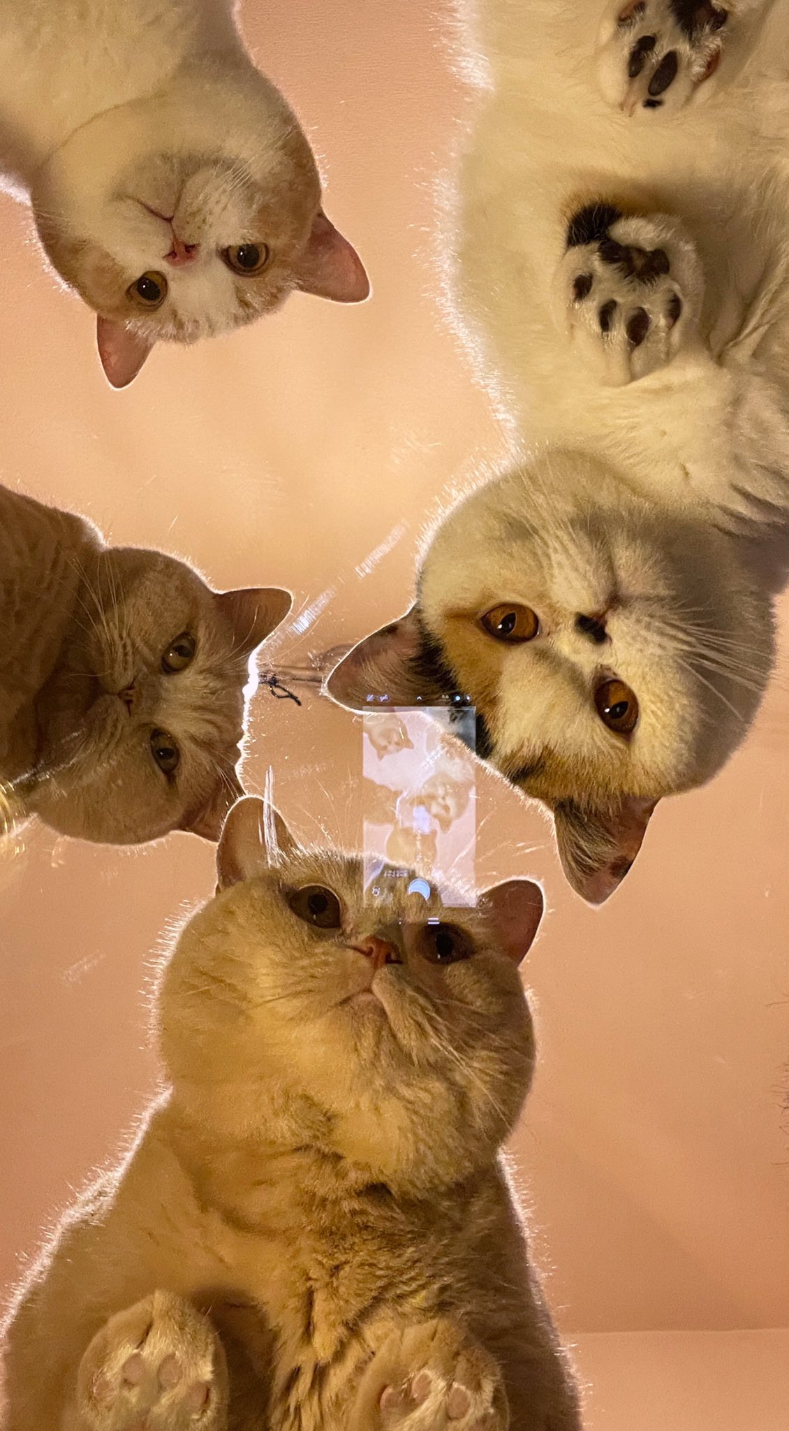 「奴才在底下幹嘛?誰說可以拍我們的!」貓咪們趴在家中的玻璃桌上,居高臨下審視鏟屎官的模樣,還真的是有點驚悚呢~照片中從底下仰望牠們的身形,完全可以一目瞭然喵主子們平時養成的圓臉、雙下巴,以及身上多處被擠壓的肥肉,這樣一看鏟屎官是的確該替牠們減減肥了!(笑)