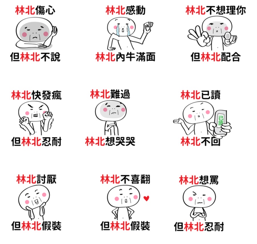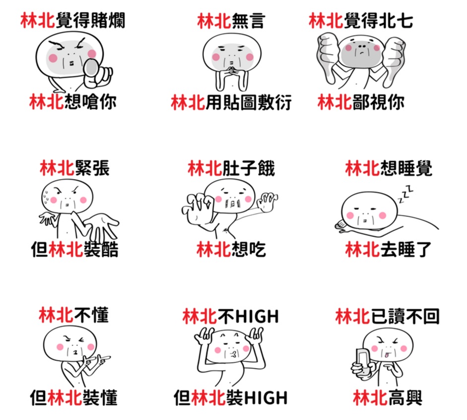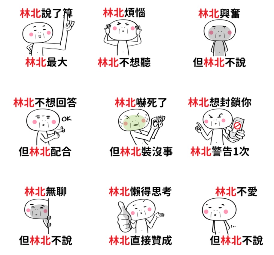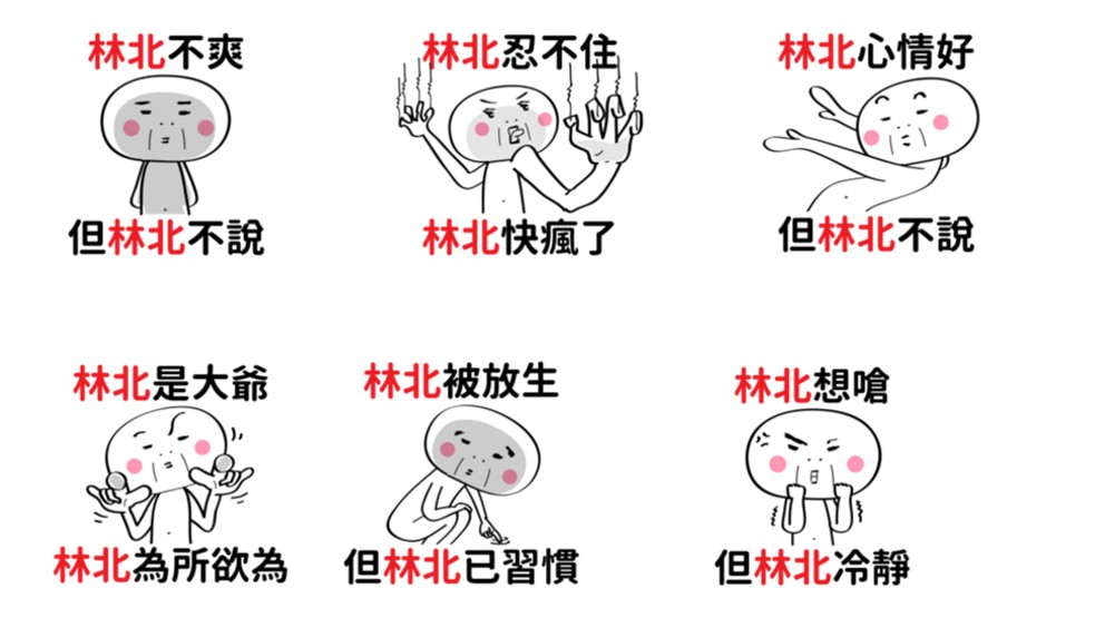 超級台味的林北簡直無所不在,但又有點傲嬌的個性實在是比寶寶可愛多了~「林北不爽,但林北不說」,簡直就是像男朋友生悶氣自己躲角落畫圈圈的樣子。能想像充滿威嚴的爸爸在你難得回家後,想笑又硬要ㄍㄧㄥ的樣子嗎?他心裡的OS就是「林北心情好但林北不說」啊!