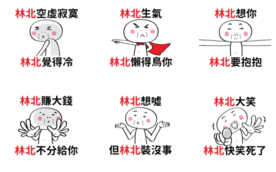 想跟男朋友曬一下恩愛的時候就來個「林北想你,林北要抱抱」,看他是會握緊拳頭還是張開雙臂,或是吵架的時候「林北生氣,林北懶得鳥你」或是威脅他「林北賺大錢,林北不分給你」,保證他一定超擔心