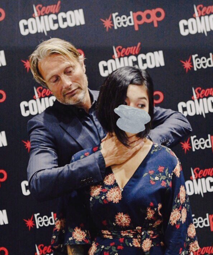 萬萬沒想到,由於漢尼拔這個角色太過迷人,導致之後邁茲米克森的粉絲見面會「畫風格外不同」(笑)... 其他明星是粉絲握手會,但來到麥叔見面會的粉絲竟紛紛提出想現場體驗「被漢尼拔握首」的心願,而十分寵粉的邁茲米克森竟然也逐一完成他們的願望,只見照片中麥叔做出勒首的姿勢,粉絲們則是露出超陶醉的迷樣表情,畫面ㄎㄧㄤ到爆!