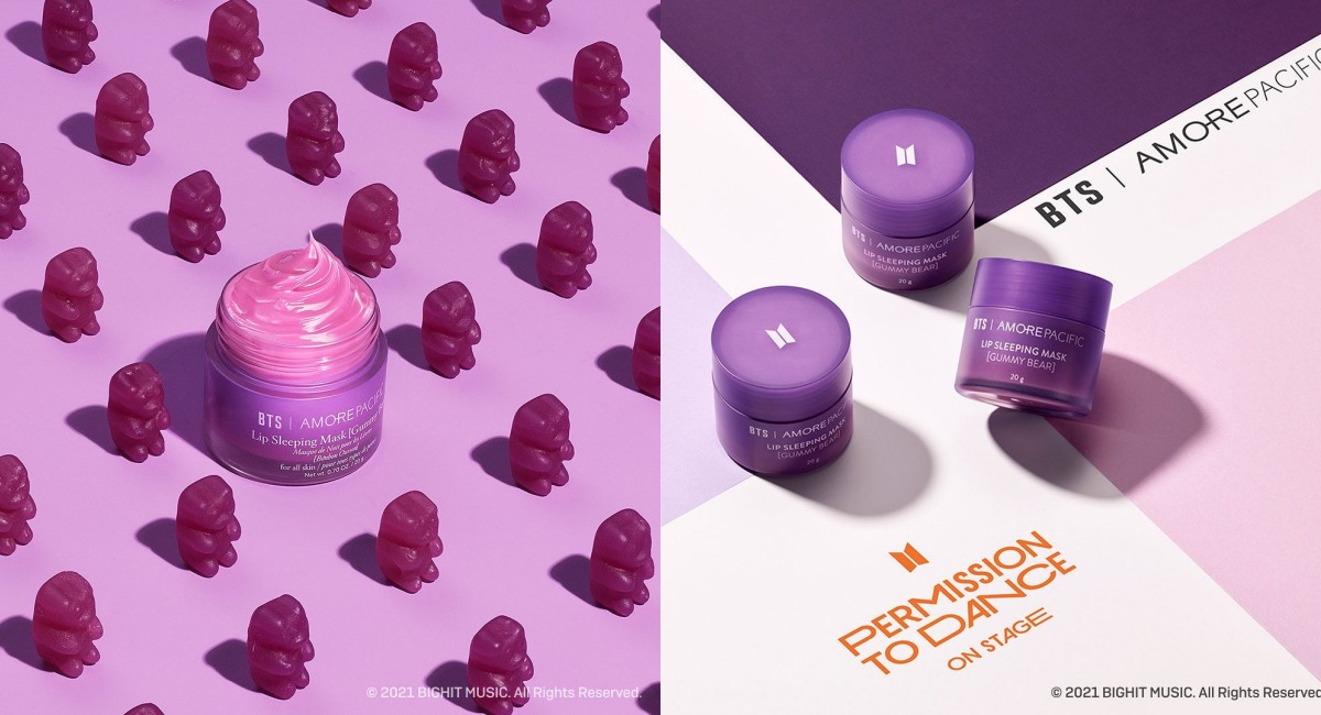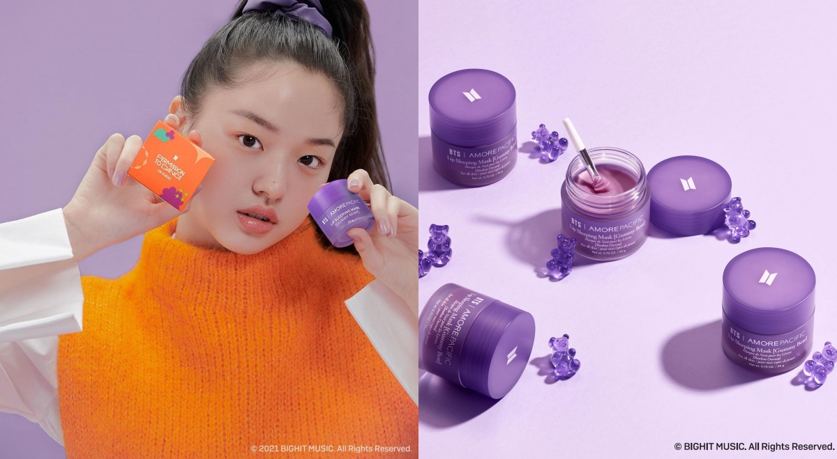 OMG!!台灣的BTS粉絲們要尖叫啦!去年剛奪下全美音樂獎「年度藝人」的BTS防彈少年團,與韓國愛茉莉太平洋首次聯名,特別選了蘭芝超~受歡迎的晚安唇膜,推出「BTS」專屬特別版晚安唇膜,顏色還挑了BTS官方應援色紫色,連產品瓶身和包裝上都印有BTS標誌,以及還有巡迴演唱會「PERMISSION TO DANCE ON STAGE」標誌圖案!!唇膜搭配的是小熊軟糖的香氣,傳遞出「Sweet Purple Dreams!」,這拿到根本捨不得用吧!