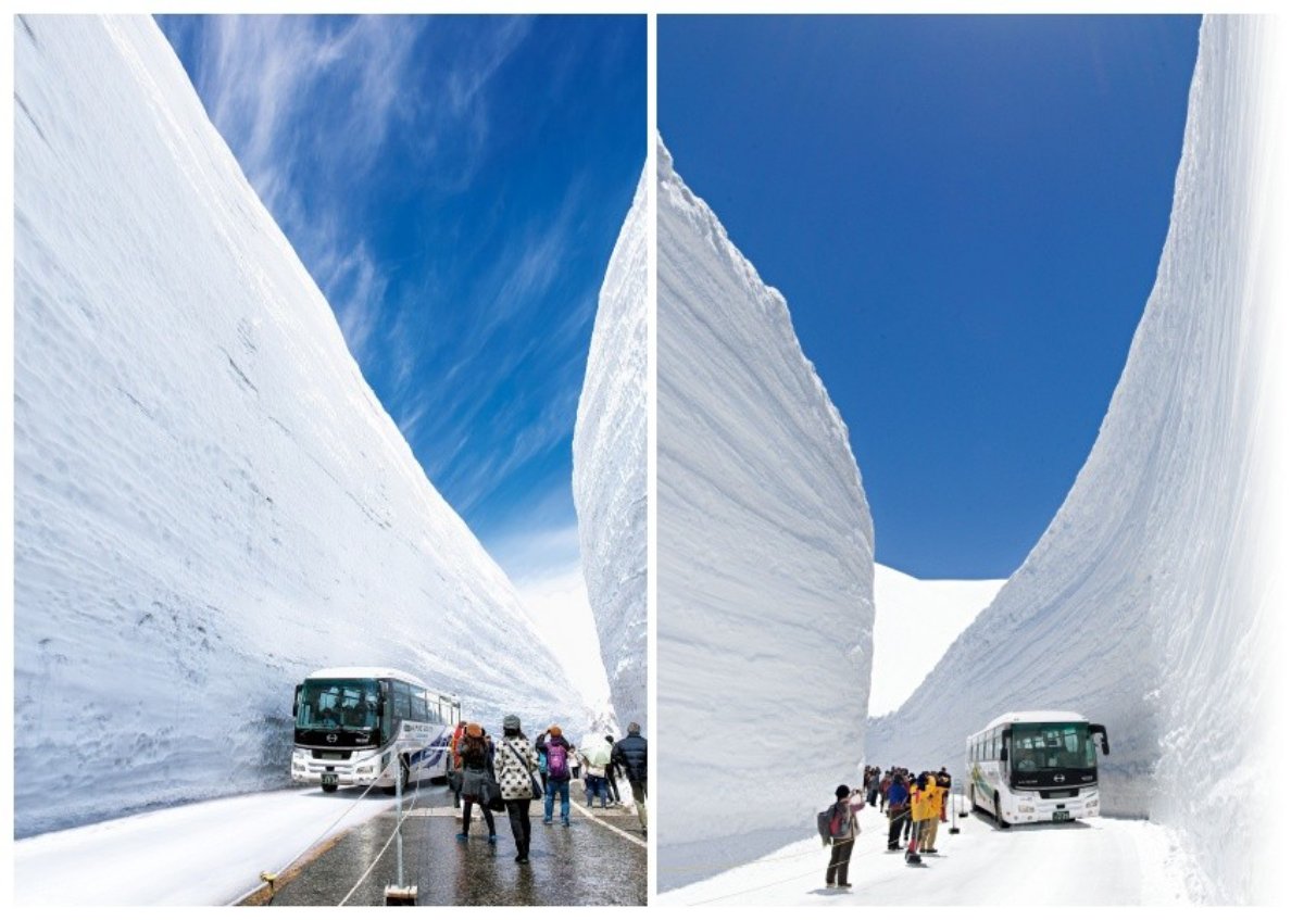 立山黑部照片中最具代表作的就是室堂的「大雪谷」了!立山的豪雪,積雪量最高曾有過20 公尺高,也就是約10層樓高哎!開放入山後,乘坐巴士抵達大雪谷的路上,兩旁的雪壁讓小編看得目不轉睛,下車後更是忍不住伸手擁抱這片白茫茫的雪壁,感謝這美好的存在,帶給小編永生難忘的瞬間!