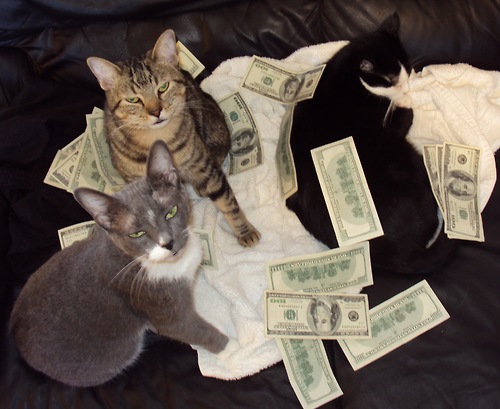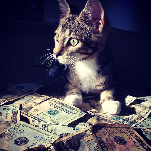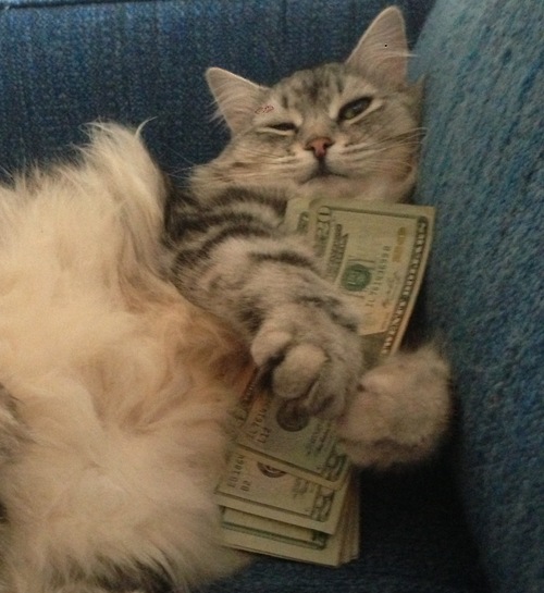 看來錢對貓咪來講也是很重要啊!(妳確定不是貓奴們太無聊才給他們錢)學會貓咪守財大原則,大家一起來做守財貓吧!