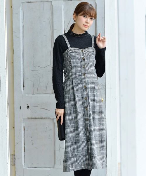 2way的灰色吊帶洋裝,可當平口穿打造優雅風格,加上吊帶時又會變成甜美的鄰家女孩感,簡單內搭黑色高領上衣就氣質滿分!