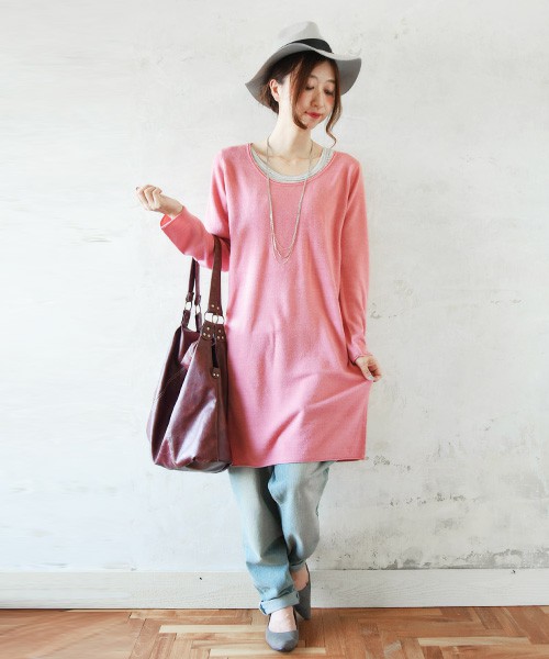 這種季節穿上粉紅色依然很療癒,簡單的長版洋裝可單穿搭配靴款,或是內搭牛仔褲又能創造不同的層次風格。
