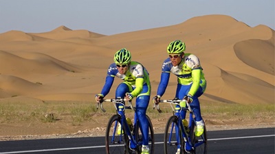 彭于晏對騰格里沙漠非常熟翻,對地理位置更是瞭如指掌,給大家上了地理課「我們雖然住在寧夏,但我們拍攝的地點已經屬於內蒙了喔!」原來他兩年前拍攝古裝電視劇《風中奇緣》,也是在這裡拍攝,他說:「環境超熟悉,但感受差很多。」拍電視劇時是在炎熱夏天穿著厚重盔甲行軍打仗,又悶又熱,這次卻是在寒冷的秋天穿著薄薄的單車服馳騁公路,越騎越冷,「反差好強烈啊!」