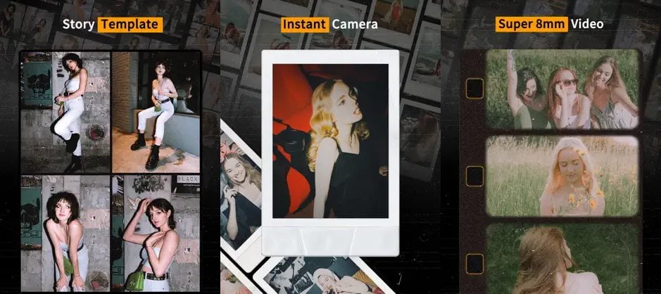Remo復古相機提供模擬多款相機的拍照效果,讓妞妞們拍完照不用修圖也能營造時尚的氛圍感!如曾經紅極一時的LOMO特效和各種底片相機的濾鏡都能一秒生成,還可以添加拍立得相框,發在社群上好看又有文青感!