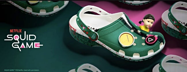 運動服不只有新款,還有可以成套穿上戰場的洞洞鞋!!!CROCS也聯手《魷魚遊戲2》出戰,綠色鞋身正中央的拉鍊設計,彷彿真的用腳尖「穿上參賽制服」,甚至還還原血跡細節,在搭配遊戲邀請名片、關主大頭、糖餅等充滿遊戲元素的Jibbitz™鞋扣,最後裝上3D立體的英熙大頭,穿出門誰敢惹你?