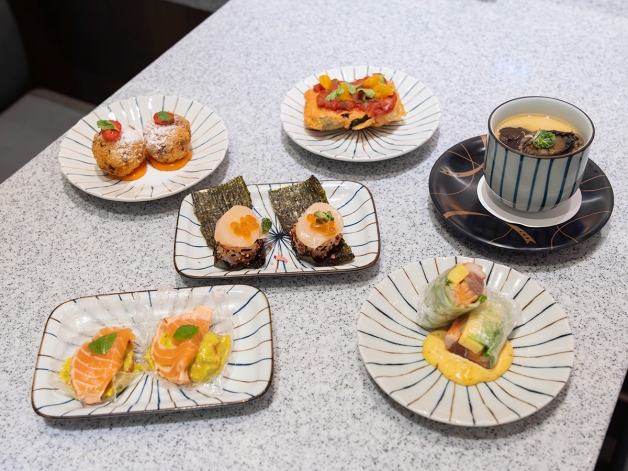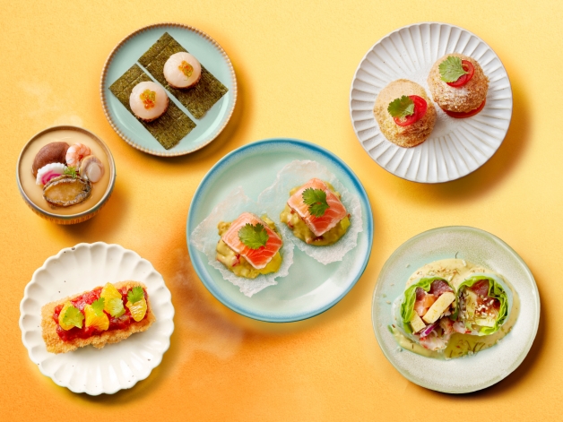 此次聯名,在菜色研發上以繽紛色系彰顯春天的花漾感,推出「蒜蓉鮑魚茶碗蒸」、「爆汁櫛瓜拿破崙」、「嘎嘣脆辣肉球」、「鮮彩干貝壽司」、「鮭魚塔酪梨」、「芥末胡麻海鮮卷」,六款新潮的壽司,絕對突破大家對日料的既定印象!